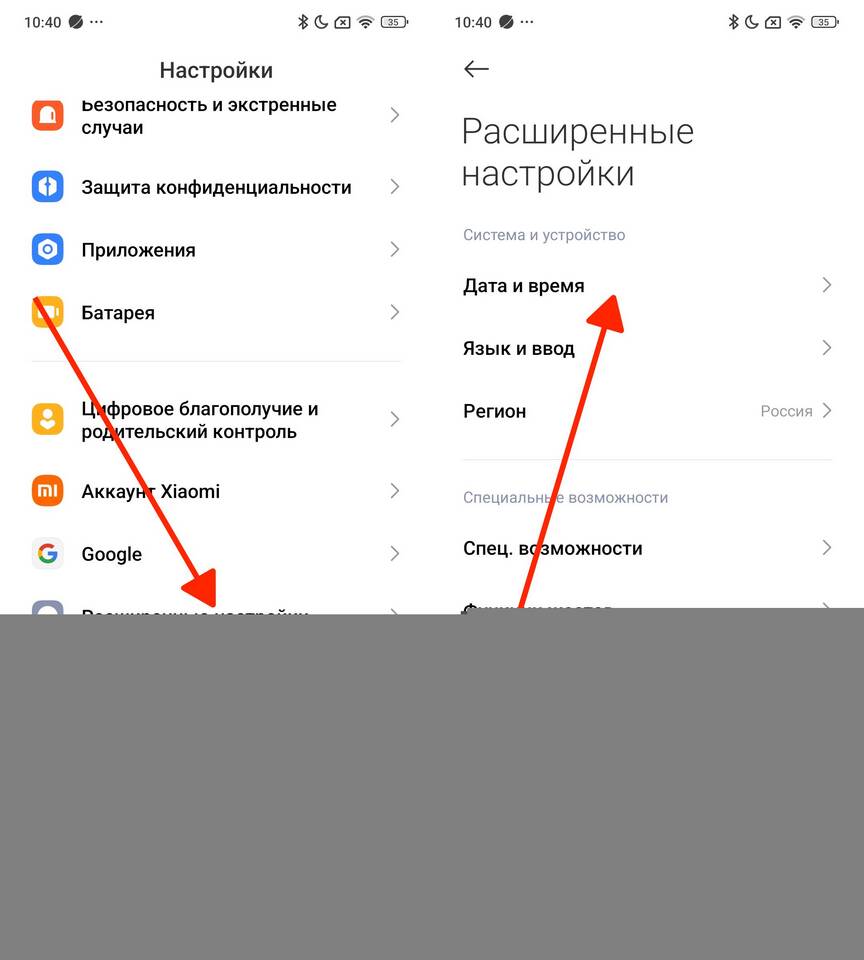 Xiaomi | Настройки → Дополнительные настройки → Дата и время |