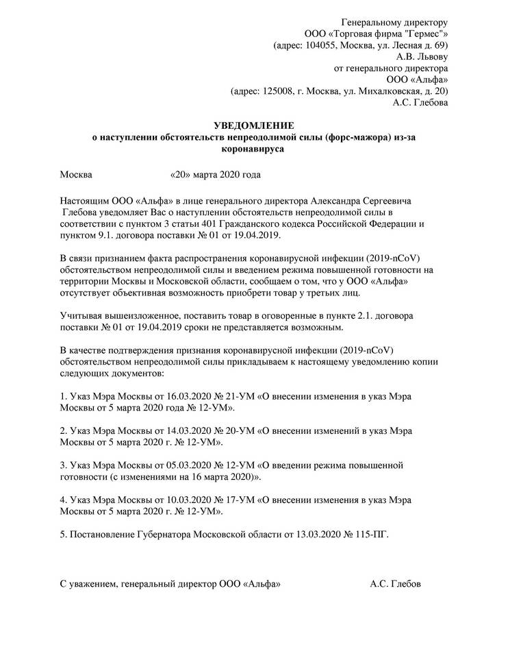 Образец уведомления о расторжении договора