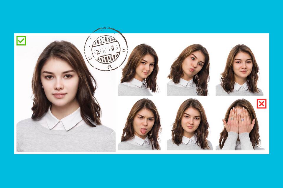 Для детей младше 14 лет допускается небольшое отклонение от требований - можно фотографировать с приоткрытым ртом и менее строгим выражением лица.