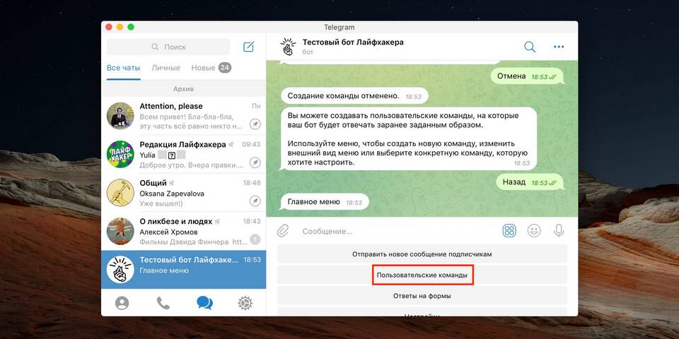 Создание бота через BotFather