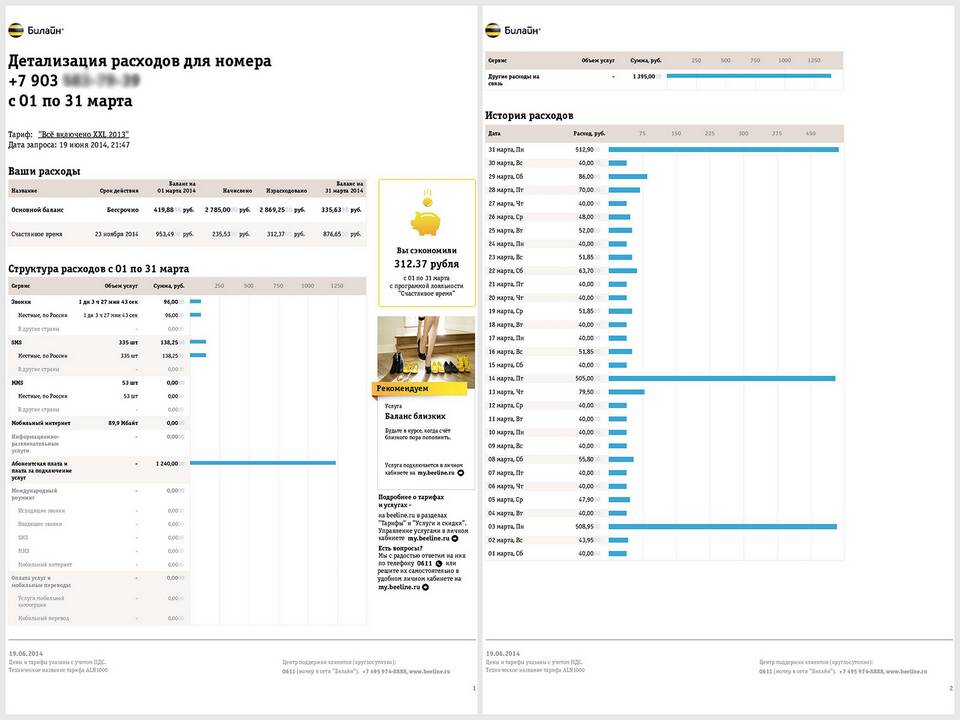 Билайн предлагает несколько вариантов просмотра детализированного отчета: