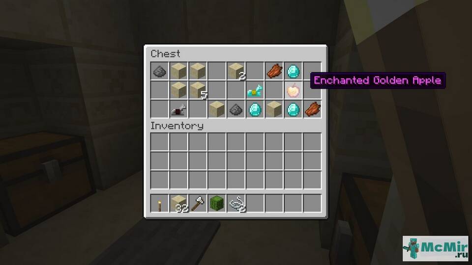 Для создания зачарованного золотого яблока вам потребуются следующие материалы:
