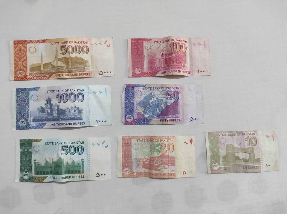 Языки на банкнотах | Надписи на урду и английском |
